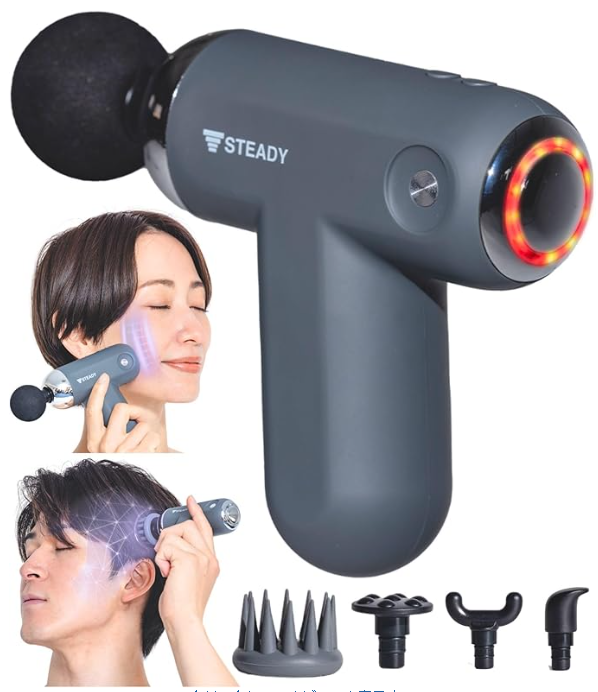 日々のデスクワークや移動で蓄積する、肩や腰の重み。そして鏡を見るたびに気になる、表情の停滞。 これまでは「マッサージガン」と「美顔器」を別々に用意するのが常識でしたが、STEADYはその常識を打ち破りました。身体を物理的に叩いてほぐすだけでなく、電気で深層を刺激し、熱で温める。